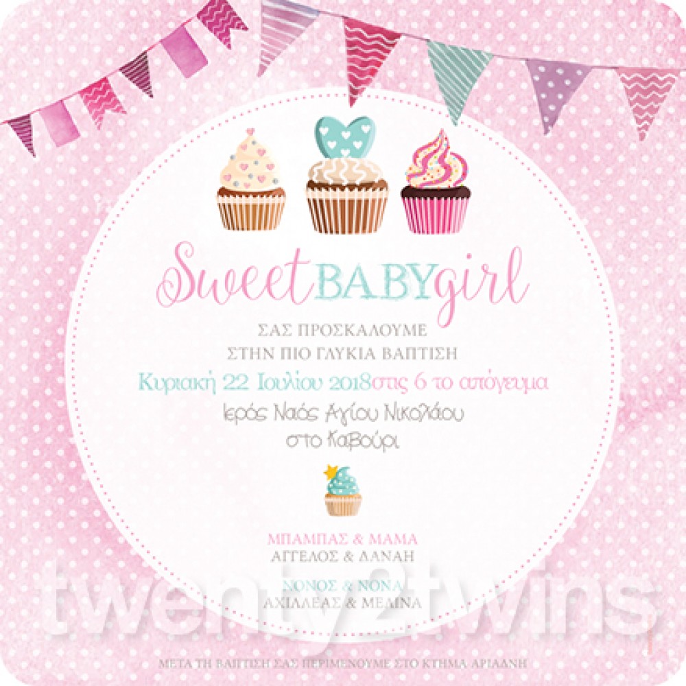 Προσκλητήριο Βάπτισης Cupcakes 18086
