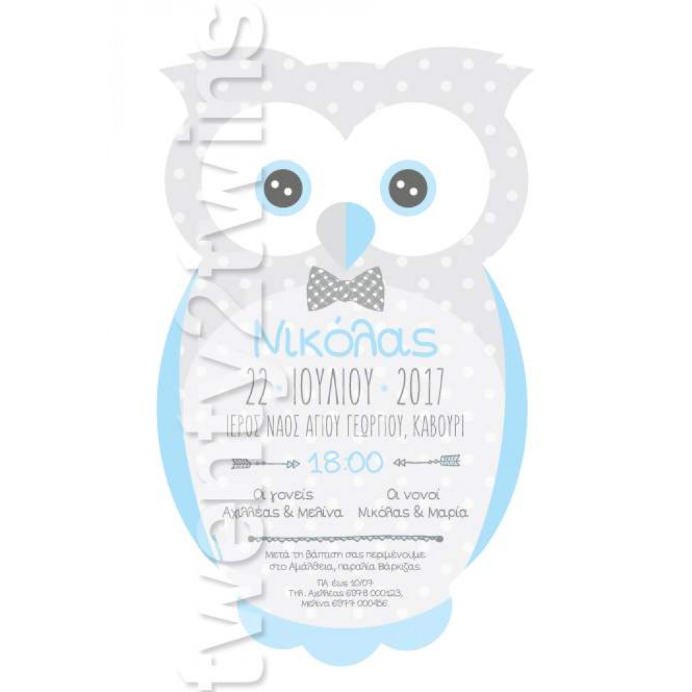 Προσκλητήριο Βάπτισης Κουκουβάγια Αγόρι 17004