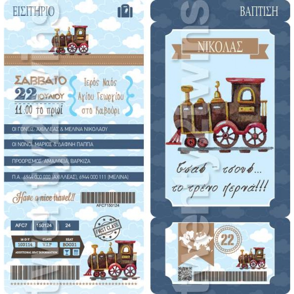 Προσκλητήριο Βάπτισης Τρενάκι 17017