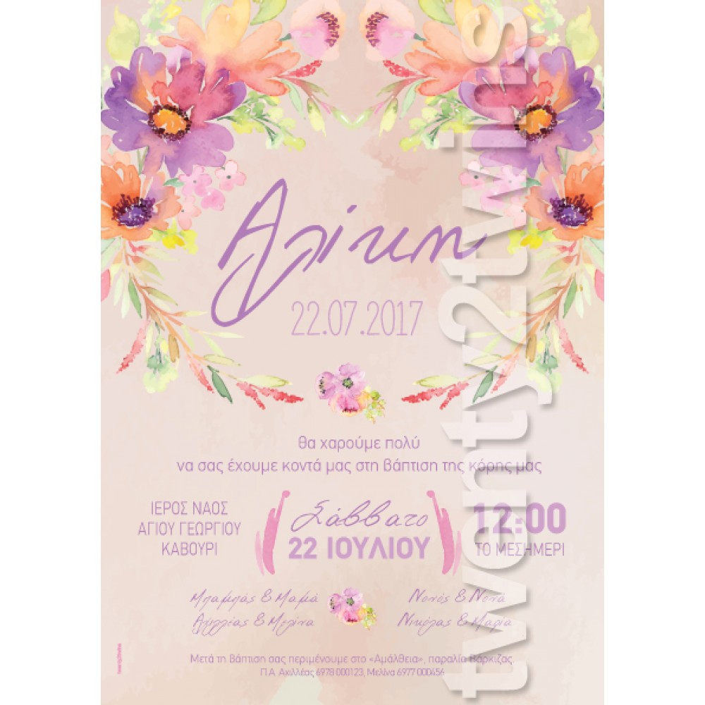 Προσκλητήριο βάφτισης σε πρωτότυπο σχέδιο, εκτυπωμένο σε εξαιρετικής ποιότητας χαρτί.