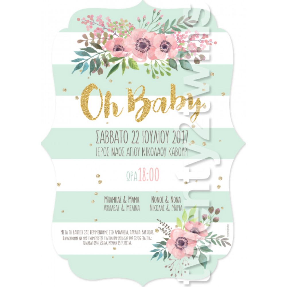 Προσκλητήριο βάφτισης σε πρωτότυπο σχέδιο, εκτυπωμένο σε εξαιρετικής ποιότητας χαρτί.