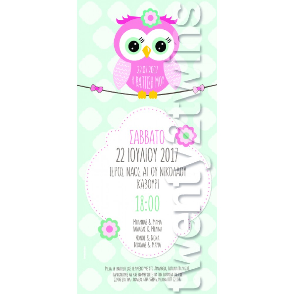 Προσκλητήριο Βάπτισης Κουκουβάγια 17095