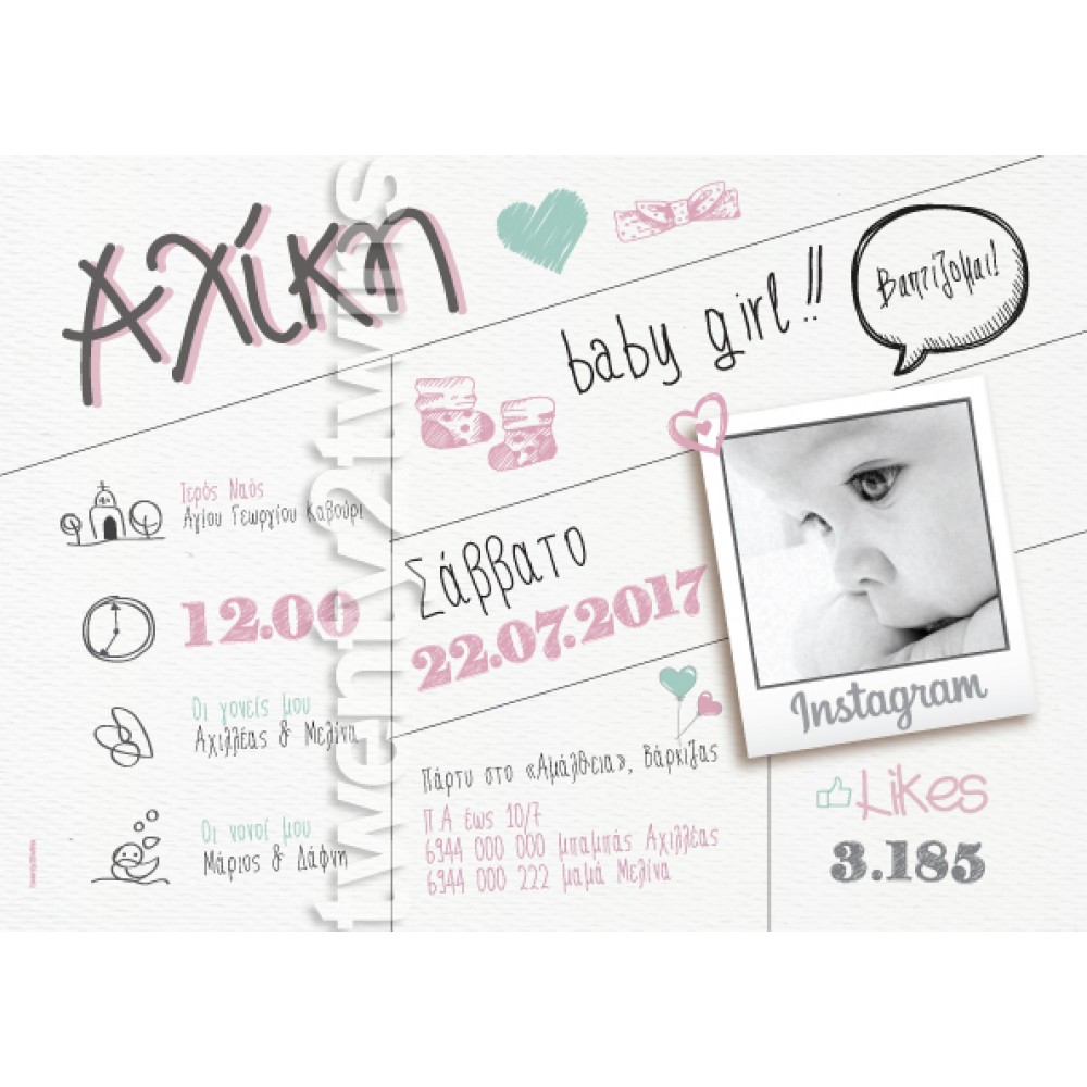 Προσκλητήριο βάφτισης σε πρωτότυπο σχέδιο, εκτυπωμένο σε εξαιρετικής ποιότητας χαρτί.