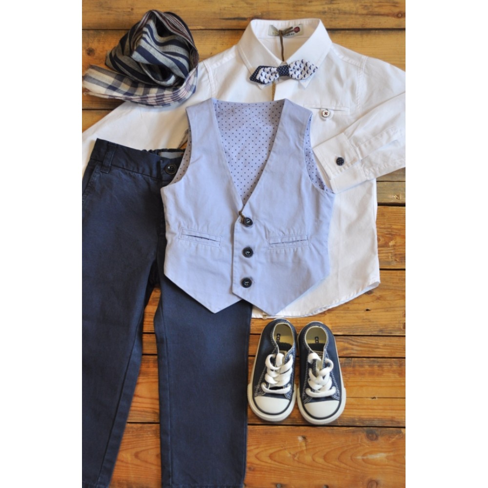 100% made in Italy.Η τιμή περιλαμβάνει το πουκάμισο με το παπιγιόν και το παντελόνι.