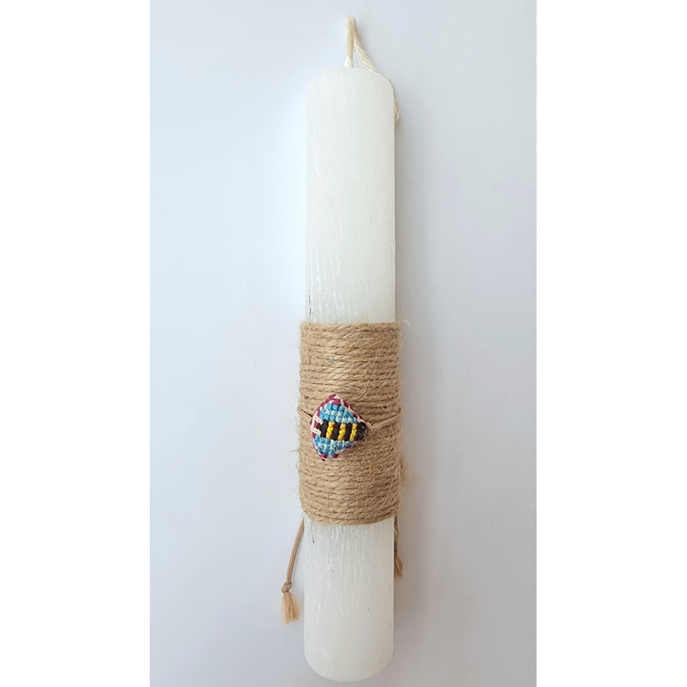 Πασχαλινή λαμπάδα με υπέροχο χειροποίητο κεντημένο βραχιόλι μέλισσα, από την Πηνελόπη Μανουσάκη.