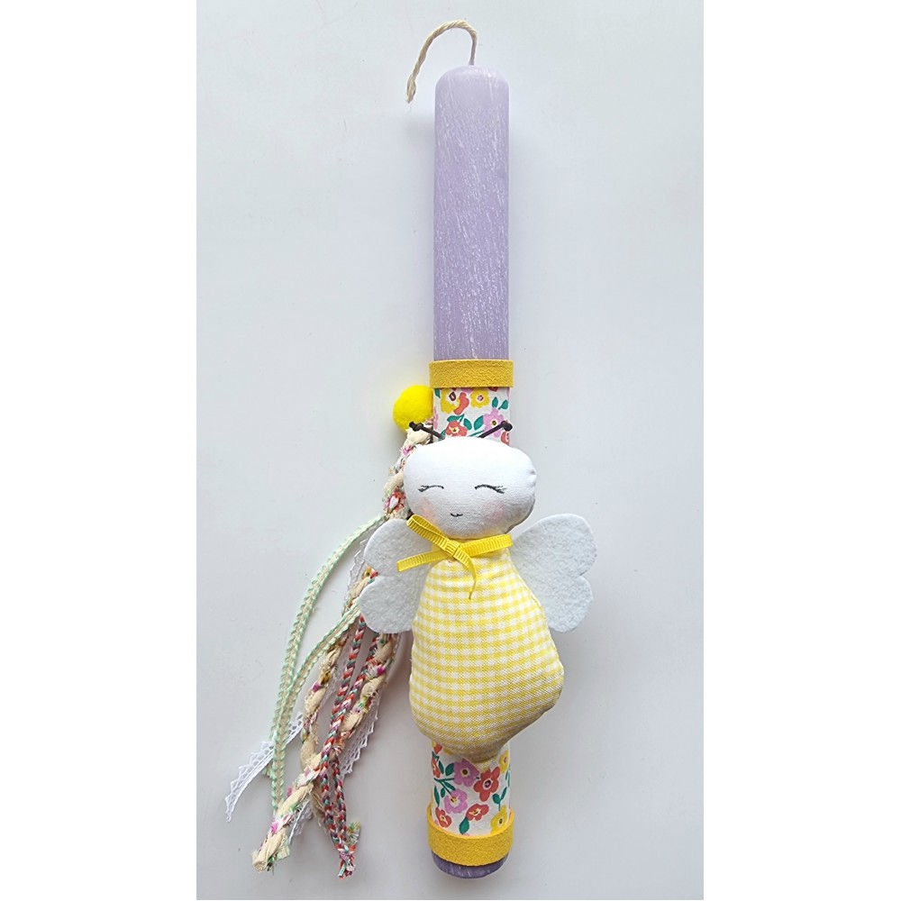 Πασχαλινή λαμπάδα με χειροποίητη υφασμάτινη μέλισσα.