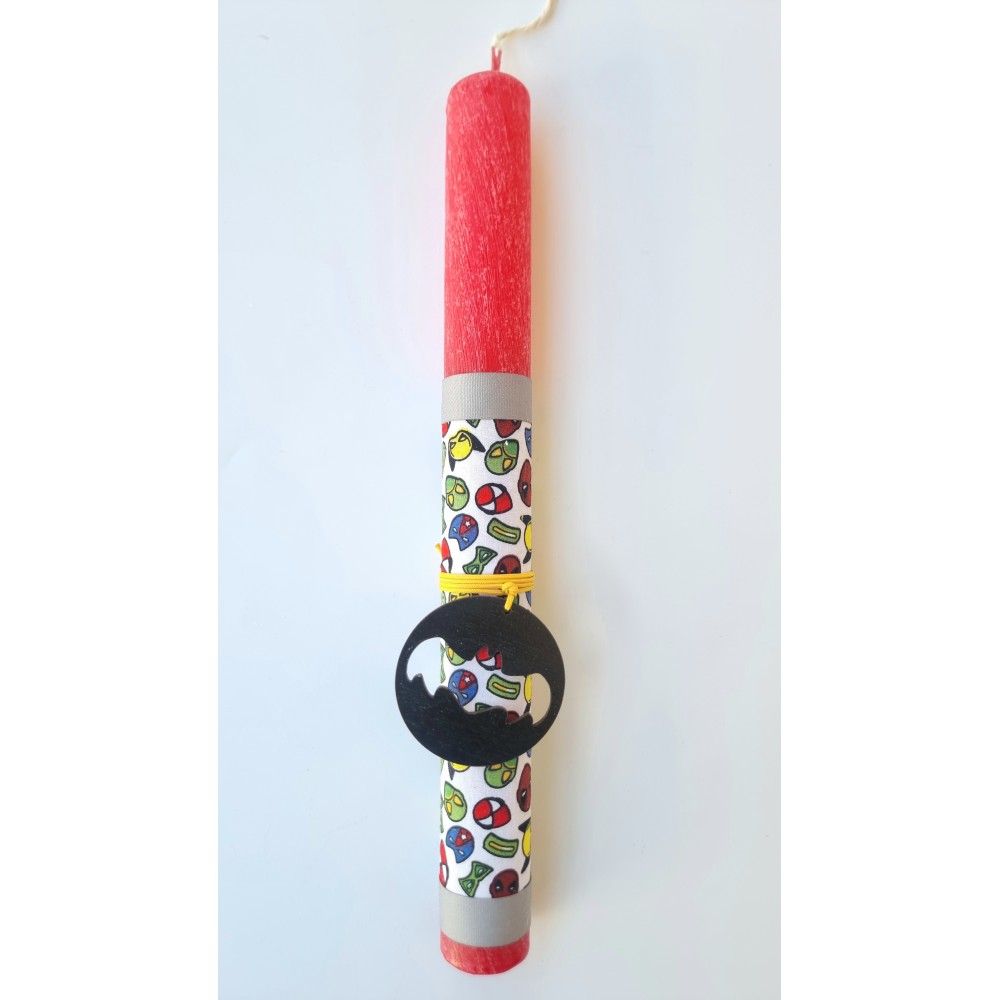 Πασχαλινή λαμπάδα με ξύλινο στοιχείο Batman.