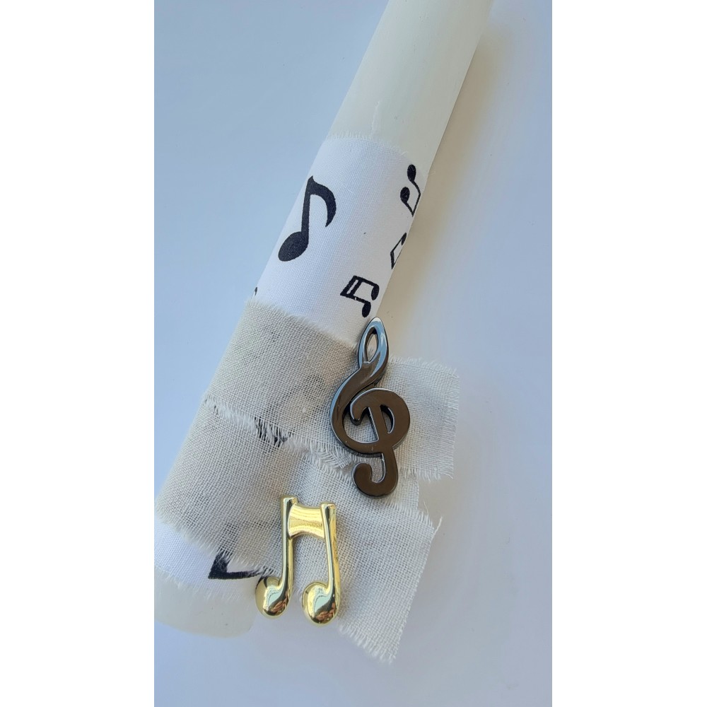Χειροποίητη πασχαλινή λαμπάδα με μεταλλικά pins νότες, εξαιρετικής ποιότητας.
