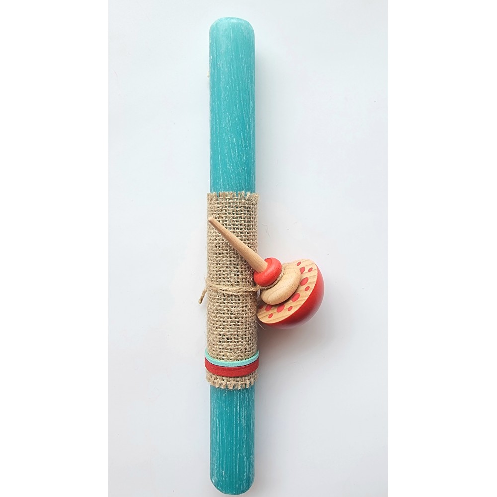 Χειροποίητη πασχαλινή λαμπάδα με όμορφη ξύλινη σβούρα, φτιαγμένη για εντυπωσιακές περιστροφές.