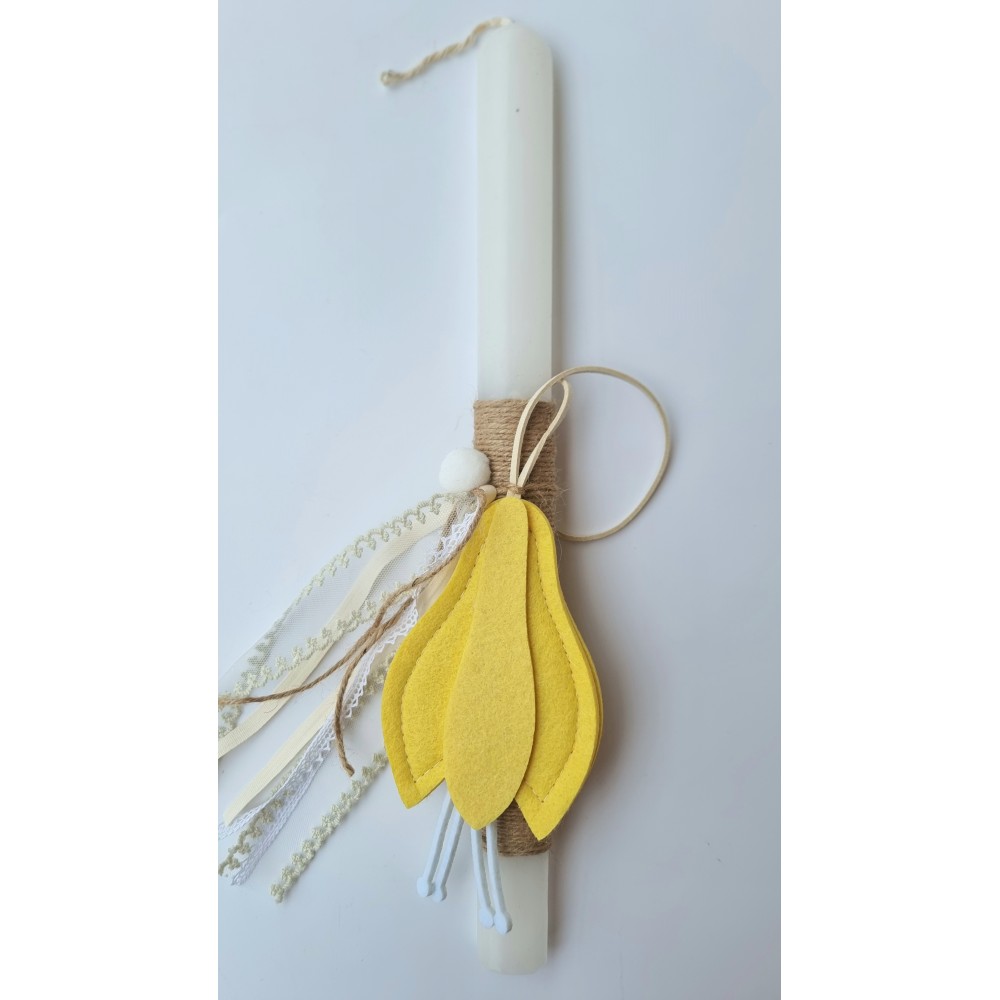 Χειροποίητη Πασχαλινή Λαμπάδα Λουλούδι Κίτρινο